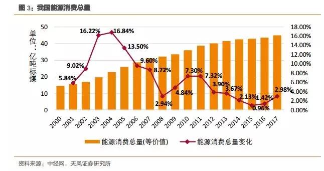 2018年4月11日,電力規(guī)劃設(shè)計總院發(fā)布的《中國能源發(fā)展報告2017》預(yù)計,2018年我國能源消費總量呈低速增長,生產(chǎn)供應(yīng)總體穩(wěn)中有升。《報告》認(rèn)為,根據(jù)經(jīng)濟(jì)發(fā)展?fàn)顩r、各行業(yè)發(fā)展前景和用能需求,2018年我國能源消費將延續(xù)消費結(jié)構(gòu)清潔化、高效化趨勢,消費總量呈低速增長,預(yù)計約45.7億噸標(biāo)準(zhǔn)煤。其中,非化石能源和天然氣仍是拉動能源消費增長的主導(dǎo)力量,占一次能源消費的比重繼續(xù)提高,天然氣消費量約2640億立方米;煤炭消費量將略有減少,約在38.5億噸,占一次能源消費比重繼續(xù)下降;石油消費量約6億噸,占一次能源消費比重保持穩(wěn)定。從生產(chǎn)端來看,預(yù)計2018年一次能源生產(chǎn)總量約36.7億噸標(biāo)準(zhǔn)煤,其中煤炭36.6億噸,石油1.91億噸,天然氣1560億立方米,一次電力2.1萬億千瓦時?!秷蟾妗凤@示,2017年我國能源生產(chǎn)總量達(dá)到35.9億噸標(biāo)準(zhǔn)煤。