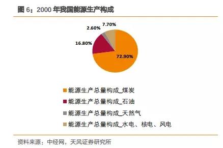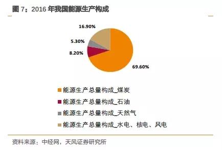 可再生能源成本降低,能源供給清潔化趨勢明顯。同時,我國能源結(jié)構(gòu)也正逐步轉(zhuǎn)換到清潔發(fā)電,強大的部署和有力的政策降低了可再生能源的成本。從2000年至2016年,天然氣、水電、核電和風(fēng)電等能源供給也在穩(wěn)步增加,在我國能源生產(chǎn)總量的占比逐漸擴大,從2000年的10.3%增長至22.2%。