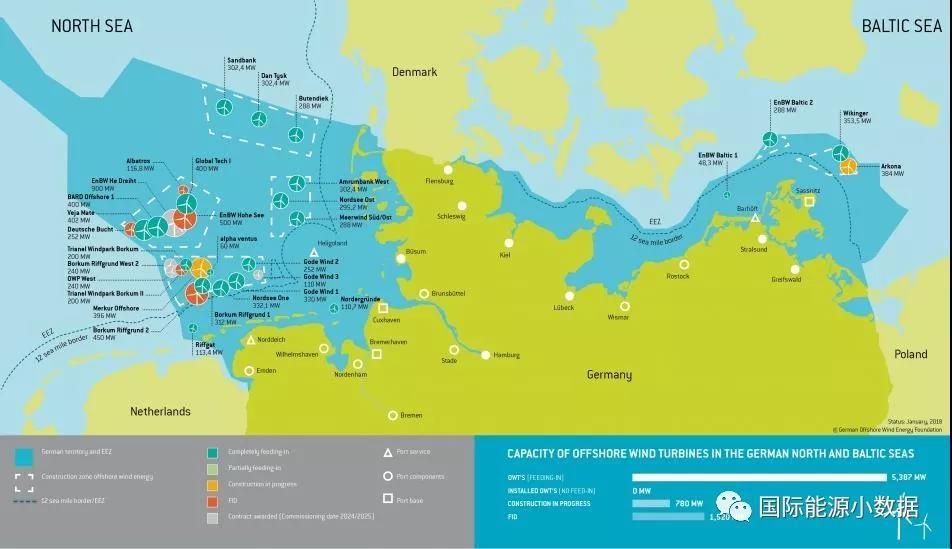 中國儲能網(wǎng)訊:2017年德國新吊裝了222臺海上風(fēng)力發(fā)電機(jī),新增裝機(jī)容量1.25吉瓦,比上一年增長30%,占全球海上風(fēng)電增量的40%。到2017年末,德國海上風(fēng)機(jī)共有1169座(997座在北海,172座在波羅的海),總裝機(jī)容量5.38吉瓦,2017年發(fā)電量179億千瓦時,占全國發(fā)電量的2.7%,就業(yè)崗位約20000人。按照德國政府的目標(biāo),2020年德國海上風(fēng)電裝機(jī)將達(dá)到7.7吉瓦,2030年達(dá)到15吉瓦。2017年海上風(fēng)機(jī)的平均單機(jī)容量為6兆瓦,預(yù)計2025年增至13-15兆瓦。