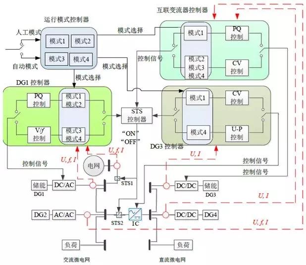 1)定義了交直流混合微電網(wǎng)的四種基本運(yùn)行方式,并分析了它們之間的切換關(guān)系;