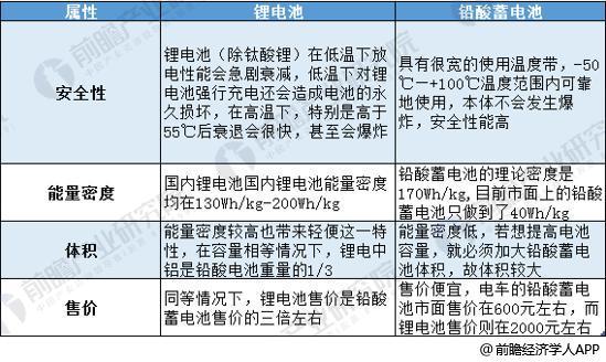 圖表1 :鋰電池和鉛酸蓄電池屬性對(duì)比