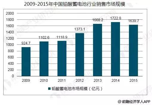據(jù)前瞻產(chǎn)業(yè)研究院《中國(guó)鉛酸蓄電池行業(yè)市場(chǎng)前瞻與投資戰(zhàn)略規(guī)劃分析報(bào)告》數(shù)據(jù)顯示,隨著經(jīng)濟(jì)的持續(xù)快速發(fā)展,汽車(chē)工業(yè)、通訊、電力、交通鐵路、計(jì)算機(jī)等基礎(chǔ)產(chǎn)業(yè)發(fā)展十分迅速,這些行業(yè)都處于一個(gè)高成長(zhǎng)時(shí)期,對(duì)蓄電池的需求日益增長(zhǎng),大大促進(jìn)了蓄電池行業(yè)的發(fā)展,2015年我國(guó)鉛酸電池行業(yè)銷(xiāo)售市場(chǎng)規(guī)模約1639.7億元。