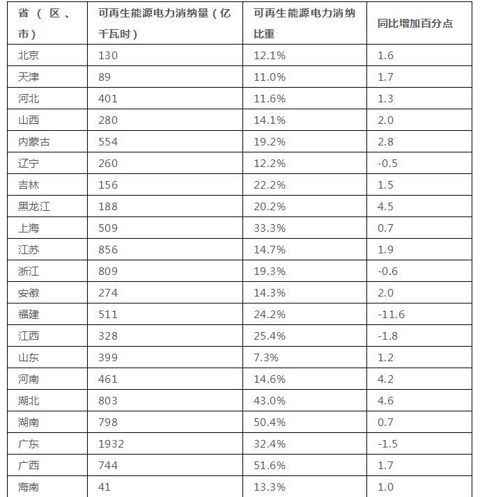 2、各?。▍^(qū)、市)可再生能源電量消納占比,等于各?。▍^(qū)、市)可再生能源消納量除以本地區(qū)全社會用電量。