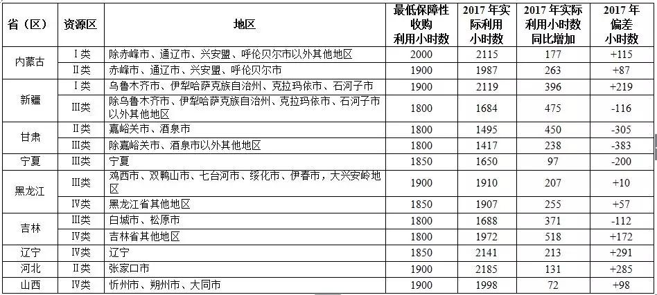 新疆Ⅲ類資源區(qū)、甘肅、寧夏、吉林Ⅲ類資源區(qū)未達到風(fēng)電最低保障收購年利用小時數(shù)要求。