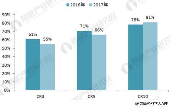 據(jù)前瞻產(chǎn)業(yè)研究院最新發(fā)布的《動力鋰電池行業(yè)市場需求預(yù)測與投資戰(zhàn)略規(guī)劃分析報告》分析指出,從2016-2017年中國動力電池行業(yè)集中度變化可知,行業(yè)前三與行業(yè)前五企業(yè)市場份額有所有所下降,而行業(yè)前十市場份額有所上升,2017年動力電池行業(yè)集中度進一步提高。