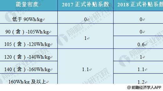 圖表3:2017-2018年不同能量密度新能源汽車補貼系數(shù)