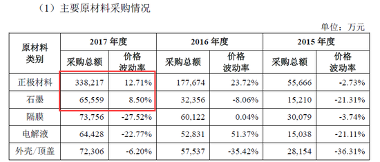 同時,再從其成本供給端看,2015年至2017年,占公司主營業(yè)務(wù)成本比例最高的為直接材料,占比分別為78.60%、81.21%和83.75%,因此原材料價格波動是影響公司成本的主要因素。在此期間,正極材料平均采購價格逐年升高,主要原因為鈷、鋰等金屬價格的上漲。其鋰電池材料主要包括三元前驅(qū)體等,報告期內(nèi)銷售價格有所波動,均價從2015年的6.35萬元/噸降至2016年的5.24萬元/噸,又升至2017年的8.15萬元/噸,2016年售價較2015年下降主要是因為主要原材料之一金屬鈷的價格在2015 年和2016年整體上趨于下降,在2016年下半年以后才開始回升。2017年,鈷價延續(xù)上漲趨勢。2016年石墨平均采購價格有所降低,但是2017年由于石墨市場供需關(guān)系變化,出現(xiàn)供應(yīng)緊張的現(xiàn)象,其石墨采購價格也出現(xiàn)上漲。原材料款的成本上升使得其毛利空間又進一步縮小。