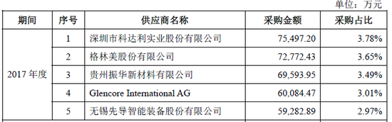 同時,新浪財經(jīng)翻閱其前五大供應(yīng)商發(fā)現(xiàn),其2017年第一大供應(yīng)商深圳市科達利實業(yè)股份有限公司采購金額為75497.20萬元,但是新浪財經(jīng)翻閱其年報的前五大銷售額,最大的銷售額為73561.53萬元,這中間近2000萬的差額到底去哪了?如此嚴謹?shù)恼泄蓵碚撠攧?wù)數(shù)據(jù)本該嚴謹,這究竟又是什么原因呢?