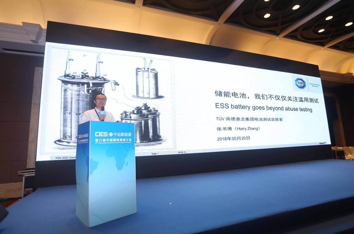 TüV南德意志集團(tuán)儲(chǔ)能事業(yè)部高級(jí)技術(shù)經(jīng)理張書博在國(guó)際儲(chǔ)能專場(chǎng),以“儲(chǔ)能電池,我們不僅僅關(guān)注濫用測(cè)試”為題,發(fā)表了精彩演講。