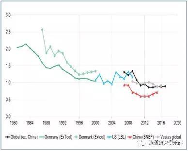圖12 全球風(fēng)電機(jī)組價(jià)格變化
