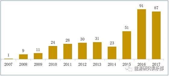 技術(shù)創(chuàng)新是我國(guó)風(fēng)電產(chǎn)業(yè)健康可持續(xù)發(fā)展的基石,近年來(lái)在不斷擴(kuò)大的產(chǎn)業(yè)規(guī)模支撐下,我國(guó)企業(yè)技術(shù)創(chuàng)新能力和速度不斷提升。風(fēng)電機(jī)組型號(hào)研發(fā)、更新速度是我們直觀了解我國(guó)風(fēng)電技術(shù)創(chuàng)新速度的一個(gè)全新角度。首先,從歷年進(jìn)行認(rèn)證的機(jī)型數(shù)量來(lái)看,從2007年到現(xiàn)在,在國(guó)內(nèi)權(quán)威認(rèn)證機(jī)構(gòu)開(kāi)展認(rèn)證的機(jī)型不斷增加,尤其是近三年,申請(qǐng)認(rèn)證的風(fēng)電機(jī)組型號(hào)數(shù)量呈現(xiàn)出爆發(fā)式增長(zhǎng),2015年認(rèn)證機(jī)型較之前翻了一番,近兩年仍在持續(xù)增加。近年來(lái)機(jī)型更新的速度不斷加快,2006年,一個(gè)機(jī)型可以保持市場(chǎng)地位5~6年,而隨著市場(chǎng)需求的不斷變化,近兩年新機(jī)型2~3年就要更新、換代。另外我們看到,葉輪過(guò)去十年增長(zhǎng)了60米,單位的掃風(fēng)面積提高52%,掃風(fēng)面積增加了170%,2017年最新機(jī)型輪轂高度已經(jīng)達(dá)到了140m,更高的160m機(jī)組也很快會(huì)進(jìn)入市場(chǎng)。新機(jī)型研發(fā)和更新速度的加快,一方面,反映了在快速變化的市場(chǎng)推動(dòng)下和滿足風(fēng)電場(chǎng)精細(xì)化開(kāi)發(fā)要求下,對(duì)機(jī)組的定制化需求,對(duì)海上大容量機(jī)組的需求,對(duì)滿足低風(fēng)速等不同資源條件、不同氣候條件和不同地形條件下特殊機(jī)型需求給風(fēng)電技術(shù)研發(fā)提出了更高的要求。另一方面,也反映了風(fēng)電企業(yè)為了應(yīng)對(duì)不斷變化的市場(chǎng)需求,在創(chuàng)新能力建設(shè)方面的努力,創(chuàng)新能力不斷加強(qiáng)和創(chuàng)新速度不斷加快。