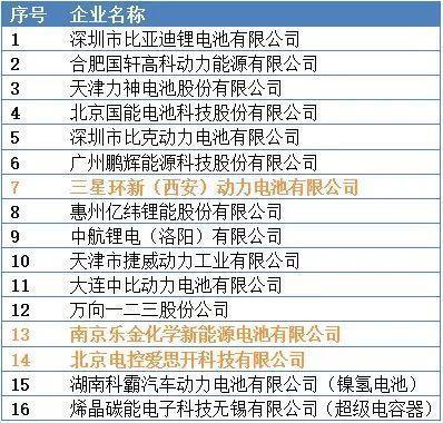 汽車動力蓄電池行業(yè)白名單(第一批)