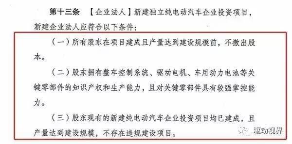 其次,《征求意見稿》提出,項(xiàng)目股東現(xiàn)有的新建純電動汽車企業(yè)的項(xiàng)目需要投資建成并達(dá)產(chǎn)。因此,新造車企業(yè)「一只母雞,多地下蛋」的打算也被堵死了。圈地,也是不可能的了。