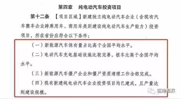第四章第十二條提出,項(xiàng)目所在省份新能源汽車保有量占比要高于全國平均水平;充電樁的樁車比要高于全國平均水平;現(xiàn)有新建純電動汽車企業(yè)投資項(xiàng)目均已建成達(dá)產(chǎn)。