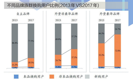主要外資品牌換購(gòu)比例超過(guò)新購(gòu)用戶自主品牌仍以新購(gòu)用戶為主