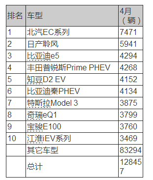 從車型分布看,4月純電動(dòng)汽車的銷量占比上升1%,達(dá)到61%,預(yù)計(jì)今年的比例將不斷提高,可能超過去年65%的水平。