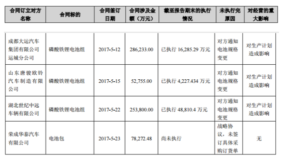 (3)公司目前資金債務(wù)狀況導(dǎo)致三元鋰電池投產(chǎn)進度暫停,需待公司資金債務(wù)妥善處理后重新啟動。