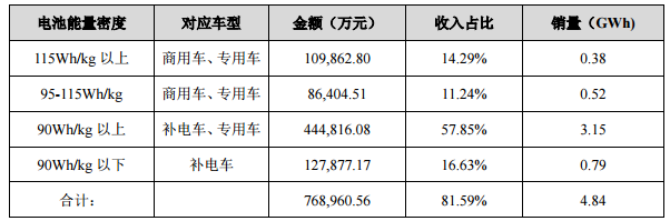 堅瑞沃能:按照電池能量密度對電池的收入分類列示如下: