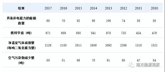 2010—2017年使用岸電的船舶情況 數(shù)據(jù)來(lái)源:Port Of Vancouver