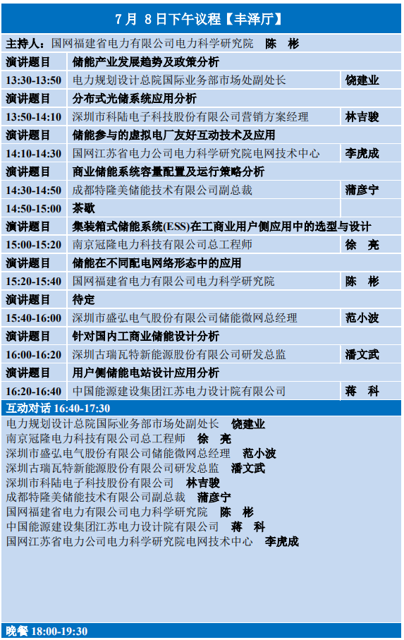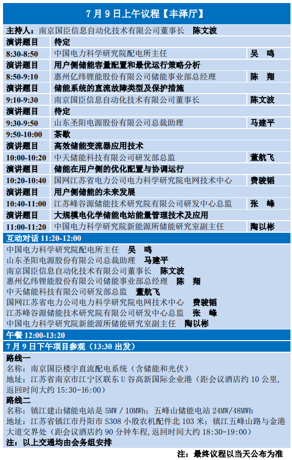 中國儲能網(wǎng)訊:為進(jìn)一步探討用戶側(cè)儲能通過參與提供電力輔助服務(wù)、需求響應(yīng)等多種電力服務(wù),發(fā)揮更多儲能應(yīng)用價值,提升項目運(yùn)行經(jīng)濟(jì)性。中國化學(xué)與物理電源行業(yè)協(xié)會儲能應(yīng)用分會決定聯(lián)合國網(wǎng)江蘇省電力有限公司、江蘇省電機(jī)工程學(xué)會、全國微電網(wǎng)與分布式電源并網(wǎng)標(biāo)準(zhǔn)化技術(shù)委員會、中國能源建設(shè)集團(tuán)江蘇省電力設(shè)計院有限公司于2018年7月8—9日在江蘇省南京市召開“第二屆全國用戶側(cè)儲能細(xì)分市場開發(fā)和應(yīng)用高層研討會”,具體議程如下: