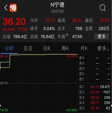 中國儲能網(wǎng)訊:創(chuàng)造24天閃電過會記錄之后,動力電池龍頭概念股寧德時代在上市交易首日就大漲43.99%,最終以36.2元收盤,可謂是向股民交出了滿意的答卷。