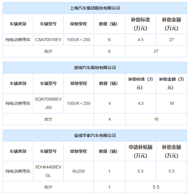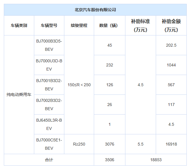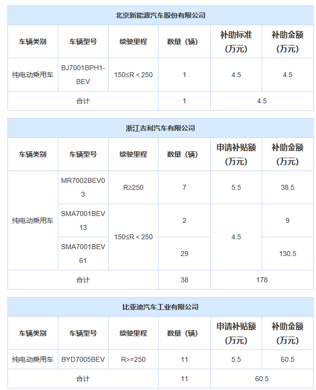 其中乘用車部分,北汽集團申領(lǐng)補貼1.88億元,吉利申領(lǐng)補貼178萬元,比亞迪申領(lǐng)補貼77萬元,東風(fēng)汽車申領(lǐng)補貼63萬元,上汽申領(lǐng)補貼27萬元,奇瑞申領(lǐng)補貼18萬元,華泰汽車申領(lǐng)補貼5.5萬元。具體信息如下: