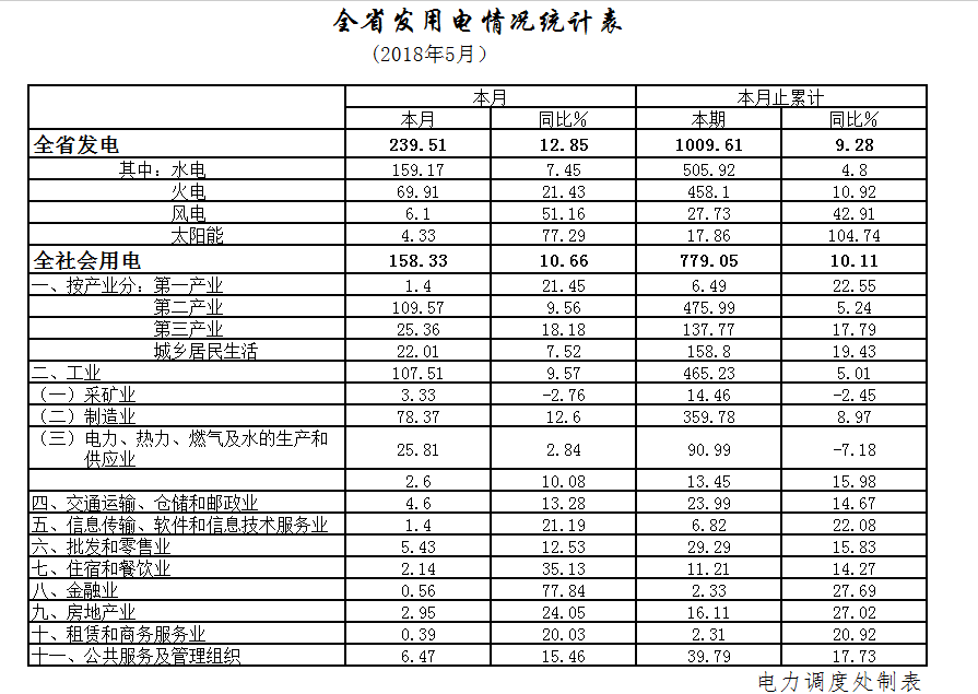 5月份,全省全社會用電158.33億千瓦時,增長10.66%,其中工業(yè)用電107.51億千瓦時,增長9.57%。
