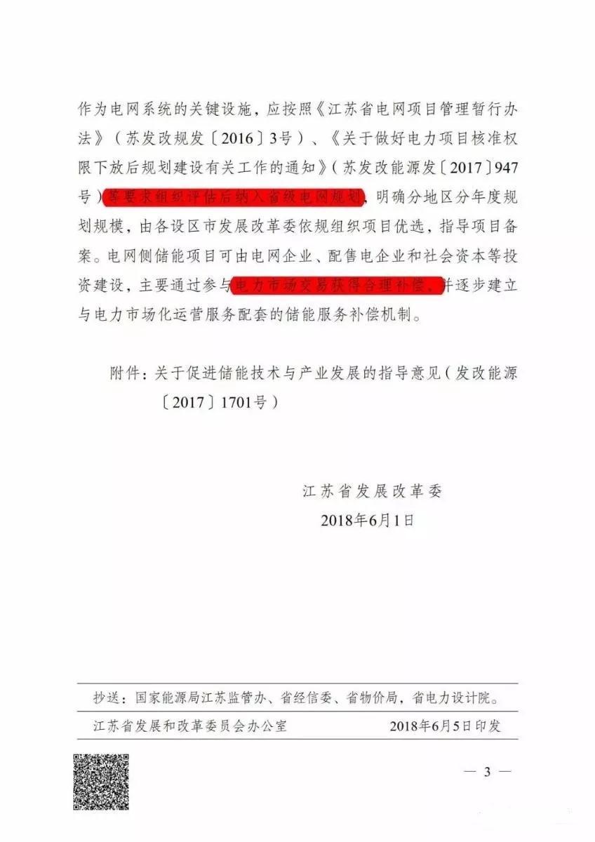 2017年9月,國網(wǎng)江蘇省電力公司發(fā)布了《客戶側(cè)儲能系統(tǒng)并網(wǎng)管理規(guī)定(試行)》文件,外界普遍解讀為江蘇在全國率先承認儲能電站的獨立并網(wǎng)地位,這為用戶側(cè)儲能設(shè)備大規(guī)模接入電網(wǎng)解除了最大的障礙。