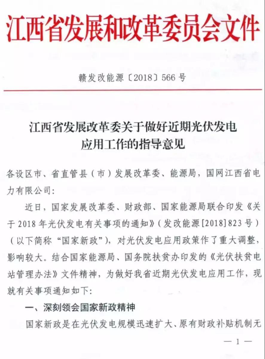 中國(guó)儲(chǔ)能網(wǎng)訊:今日,江西省發(fā)改委下發(fā)《關(guān)于做好近期光伏發(fā)電應(yīng)用工作的指導(dǎo)意見(jiàn)》,
