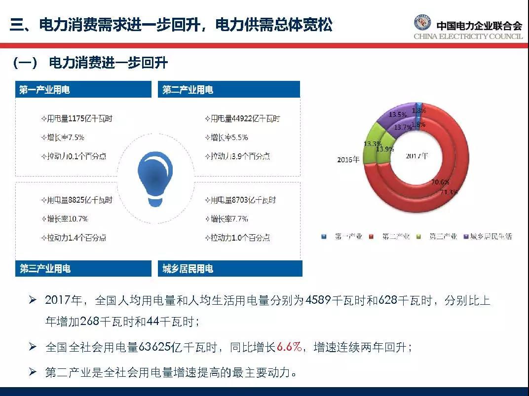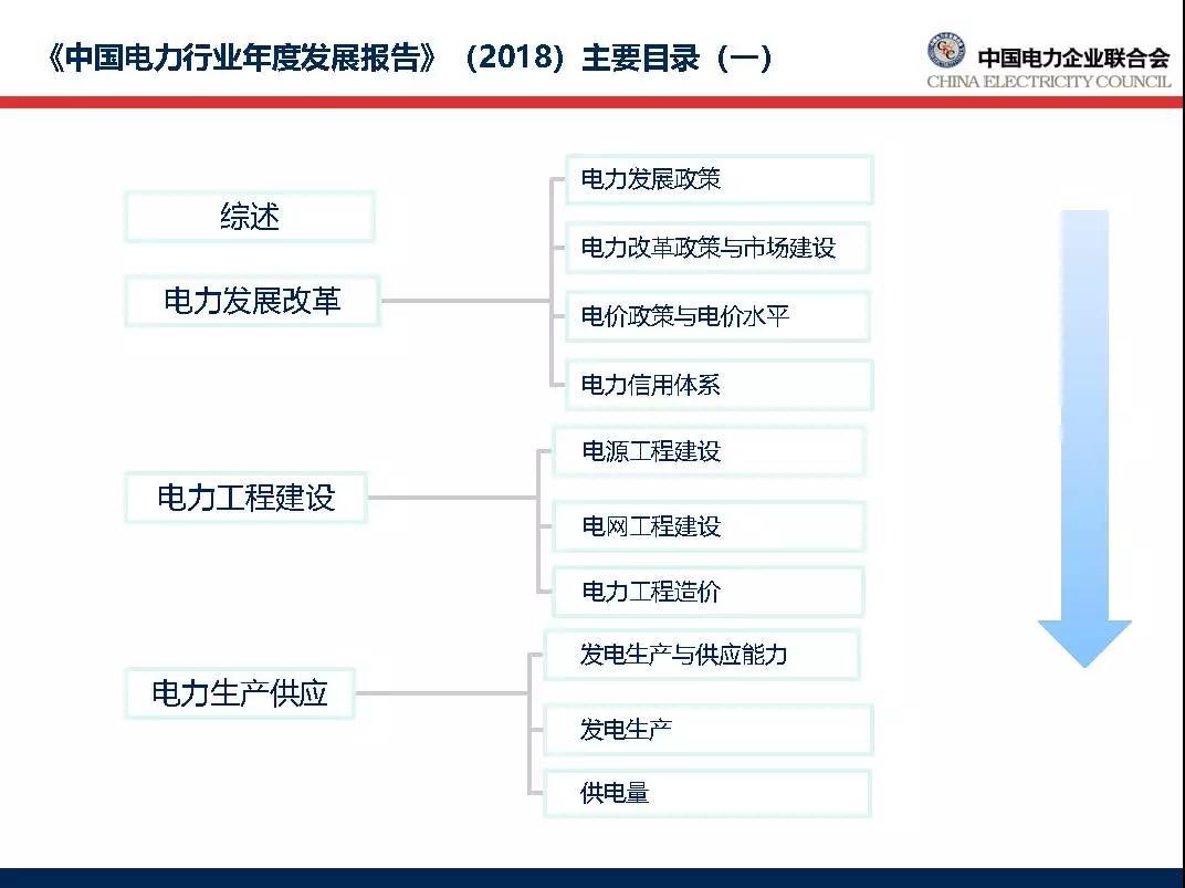 《行業(yè)發(fā)展報告2018》共計11章,具體為:綜述、電力發(fā)展與改革、電力工程建設(shè)、電力生產(chǎn)與供應(yīng)、電力消費與供需、電力安全生產(chǎn)與可靠性、電力綠色發(fā)展、電力科技與信息化、電力標(biāo)準(zhǔn)化、電力企業(yè)發(fā)展與經(jīng)營、電力國際交流與合作,附件中還列出了2017電力行業(yè)大事記、電價水平以及電力生產(chǎn)建設(shè)、大型電力企業(yè)發(fā)展運營等相關(guān)數(shù)據(jù)。與往年報告相比,《行業(yè)發(fā)展報告2018》增加了電能替代、電力信用體系建設(shè)等板塊,豐富了電力發(fā)展與改革、電力科技與信息化、電力國際交流合作等行業(yè)發(fā)展重點熱點內(nèi)容;在表現(xiàn)形式上,更加強調(diào)文字精煉與圖表展示,增加了報告的可讀性;在觀點分析方面,立足行業(yè)第三方的客觀視角,更加強調(diào)電力發(fā)展的趨勢性分析,便于把握電力發(fā)展的規(guī)律特征。