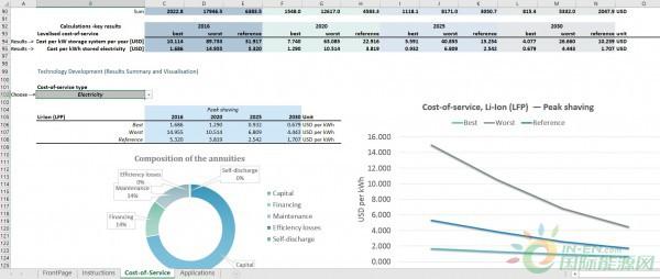 為了解決這個(gè)問題,IRENA(國際能源署)在對電力存儲技術(shù)及其成本和性能分析的基礎(chǔ)上推出了一種新的電力存儲工具,使用戶能夠?qū)?2種固定存儲應(yīng)用中的13種不同電力存儲技術(shù)的相對經(jīng)濟(jì)適用性進(jìn)行快速而穩(wěn)健的分析。通過修改各種參數(shù),用戶可以了解不同項(xiàng)目和地點(diǎn)的特定變量。