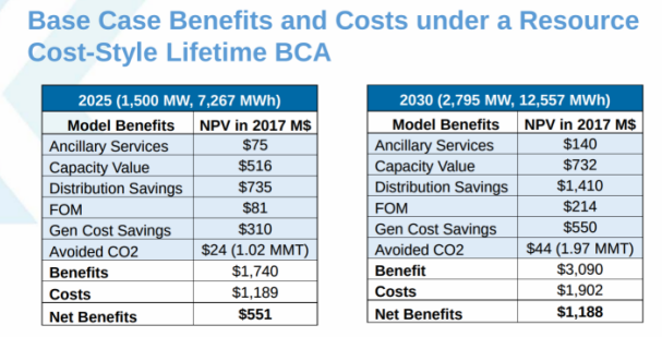 該路線圖包括到2025年部署1500兆瓦時(shí)的儲(chǔ)能目標(biāo),以及到2030年部署2795兆瓦時(shí)的儲(chǔ)能目標(biāo)的成本預(yù)測(cè)。它使用了Acelerex公司的一項(xiàng)分析,估計(jì)2030年的儲(chǔ)能部署將通過(guò)通過(guò)計(jì)算從緩解電網(wǎng)擁塞、配電節(jié)約、避免二氧化碳排放的成本和其他收益為納稅人帶來(lái)超過(guò)11億美元的凈收益。