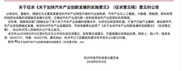 中國儲能網(wǎng)訊:近日,杭州市經(jīng)濟和信息化委員會發(fā)布了關(guān)于《關(guān)于加快汽車產(chǎn)業(yè)創(chuàng)新發(fā)展的實施意見》(征求意見稿)意見的公告。實施意見指出,到2020年,杭州新能源汽車產(chǎn)銷量將達到10萬輛,新能源汽車產(chǎn)業(yè)實現(xiàn)主營業(yè)務(wù)收入300億元,占汽車產(chǎn)業(yè)比重達30%,智能網(wǎng)聯(lián)汽車產(chǎn)業(yè)初具規(guī)模,智能網(wǎng)聯(lián)汽車新車占比達到30%。