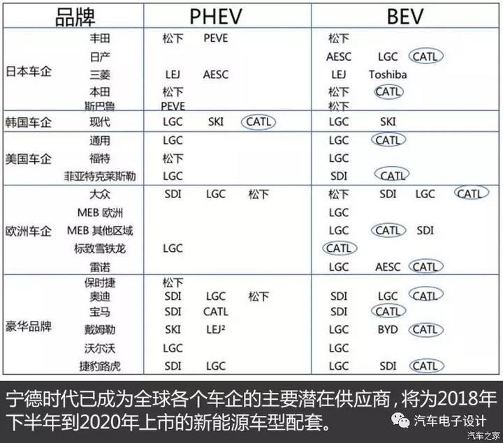 隨著補(bǔ)貼持續(xù)下降,CATL與國外的松下、三星SDI和LG化學(xué)在PHEV和EV兩個(gè)方面作為競爭對(duì)手比拼產(chǎn)品、價(jià)格和配套能力。
