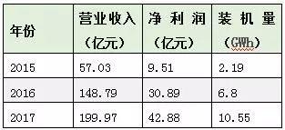 寧德時代從2016年開始,營業(yè)收入和凈利潤都呈現(xiàn)突飛猛進的態(tài)勢;而且其裝機量2016、2017年連續(xù)在全球都是排名第一。