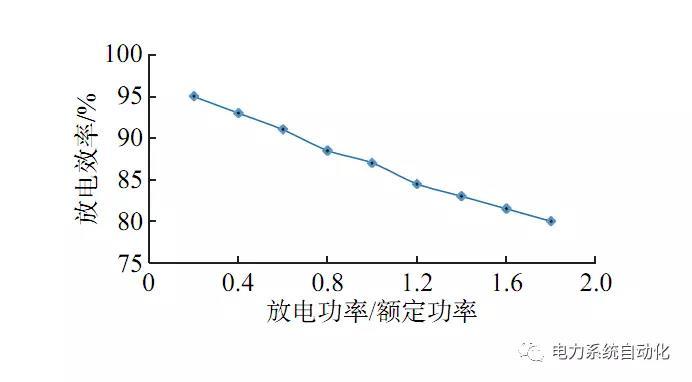 電化學儲能的效率特性與壓縮空氣儲能完全不同。以放電環(huán)節(jié)為例,鉛酸電池和鋰電池儲能在合理放電深度范圍(典型值SOC在20%~95%區(qū)間),電壓基本不變,效率隨著放電電流的增大有不同程度的降低。依據鋰電池放電深度與電壓的關系、放電效率與電流的關系得到鋰電池放電效率變化特性,有著“下降型”特征,且近似線性。