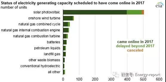 中國(guó)儲(chǔ)能網(wǎng)訊:根據(jù)美國(guó)能源信息署數(shù)據(jù),2018年美國(guó)將增加25.1GW電力裝機(jī)容量。這些增量中的19.7GW(78%)已按照計(jì)劃于去年并網(wǎng)。大約5.3GW的規(guī)劃裝機(jī)容量推遲到今年或之后幾年建設(shè)。少量項(xiàng)目被取消。
