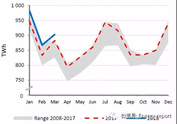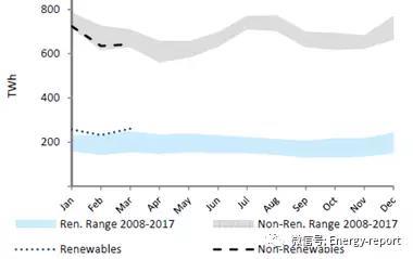 —寒冷的3月導(dǎo)致經(jīng)合組織歐洲地區(qū)國家的發(fā)電量同比增長了6.8%,幾乎達到了2018年1月的水平。