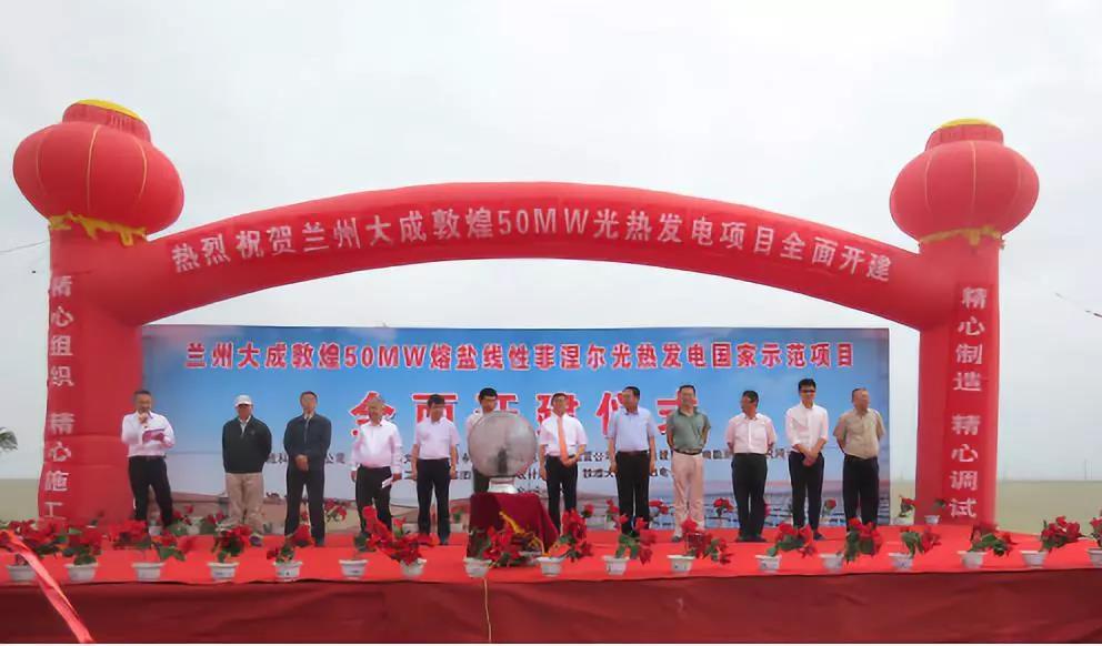 中國儲能網(wǎng)訊:6月29日上午,由蘭州大成科技股份有限公司投資開發(fā)的敦煌50MW熔鹽菲涅爾光熱發(fā)電示范項目在敦煌市光電產(chǎn)業(yè)園區(qū)舉行全面開建儀式。
