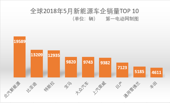 各個車企旗下新能源汽車的加總銷量排名,由于19589輛的交付量創(chuàng)造了新的歷史紀(jì)錄,北汽新能源重返第一位,比亞迪和特斯拉各下一位,2018年冠軍寶座將成為這三匹戰(zhàn)馬的爭奪賽。