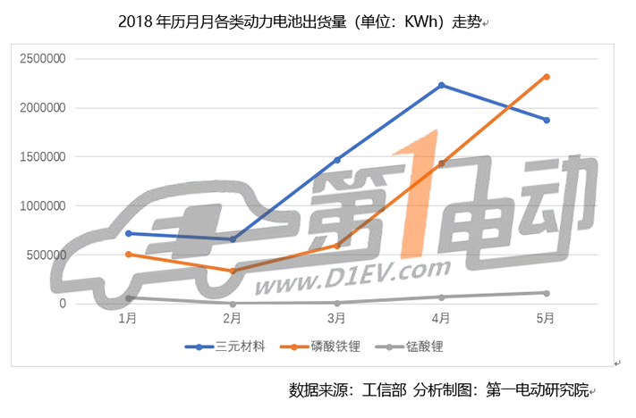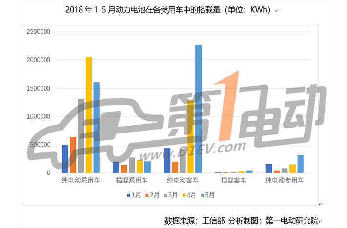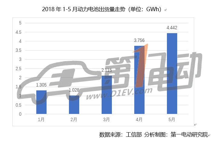 根據(jù)第一電動(dòng)研究院的統(tǒng)計(jì)測(cè)算,2018年5月國內(nèi)新能源汽車市場(chǎng)動(dòng)力電池裝機(jī)量為4.442GWh,比上月增長18.26%,同比增長207.8%。