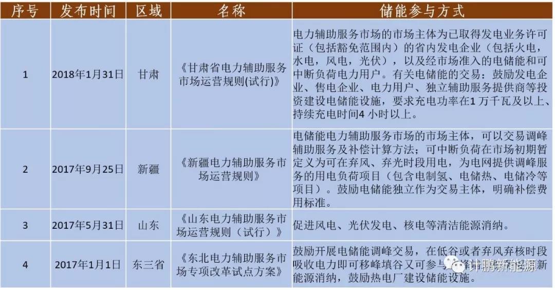 在近兩年頒布的儲能參與電力市場輔助服務(wù)的政策中,明顯指向解決風(fēng)電光電的消納。