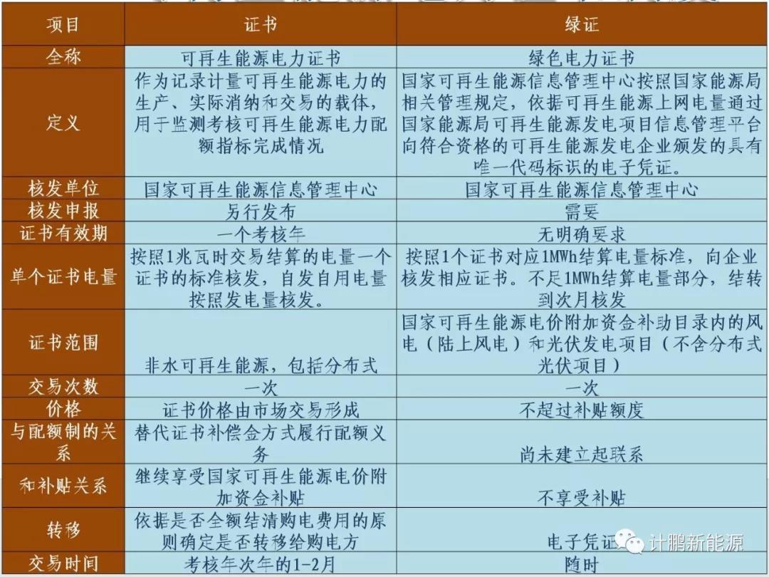 可再生能源電力證書與綠證看似重復(fù),但實質(zhì)內(nèi)涵不同,區(qū)別很大。相同點是其核發(fā)單位、目前的允許交易次數(shù);不同點是其定義、核發(fā)申報程序、證書有效期、單個證書的電量、證書范圍。