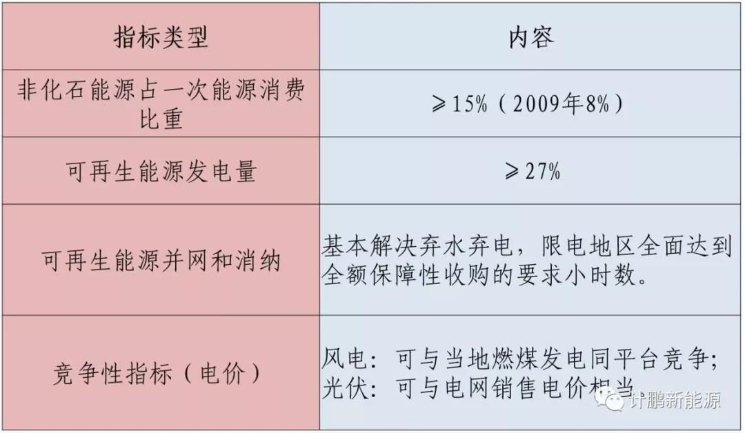 根據(jù)《能源發(fā)展十三五規(guī)劃》的要求,到2020年,非化石能源占一次能源的消費比重≥15%,可再生能源發(fā)電量≥27%,基本解決棄水棄電,限電地區(qū)全面達(dá)到全額保障性收購的要求小時數(shù)。風(fēng)電可與當(dāng)?shù)厝济喊l(fā)電同平臺競爭,光伏可與電網(wǎng)銷售電價相當(dāng)。