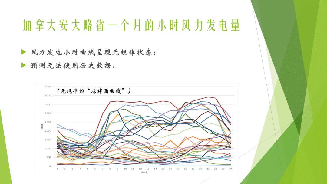 以加拿大安大略省一個月的小時風力發(fā)電量數(shù)據(jù)為例,可以看到風力發(fā)電小時曲線呈現(xiàn)無規(guī)律狀態(tài)。這意味著,在進行預測時,無法利用歷史數(shù)據(jù)。