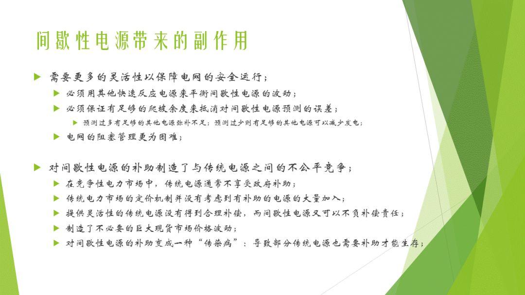 對風能、太陽能等可再生能源的高額補貼降低了其發(fā)電成本,但間歇性發(fā)電對系統(tǒng)安全的挑戰(zhàn)和造成的系統(tǒng)成本的增加目前的電力市場中沒有充分考慮。