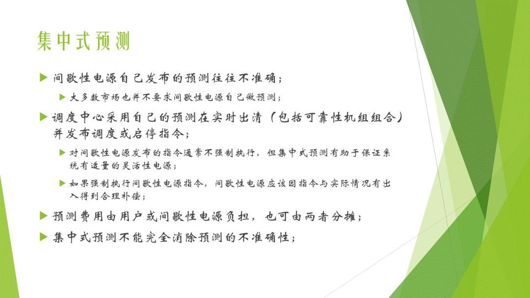 對間歇性電源,可以采用由調(diào)度機構統(tǒng)一預測的方式以提高預測精度。多個電力市場采用這種方法。預測成本可以由市場通過一定方式分攤出去。