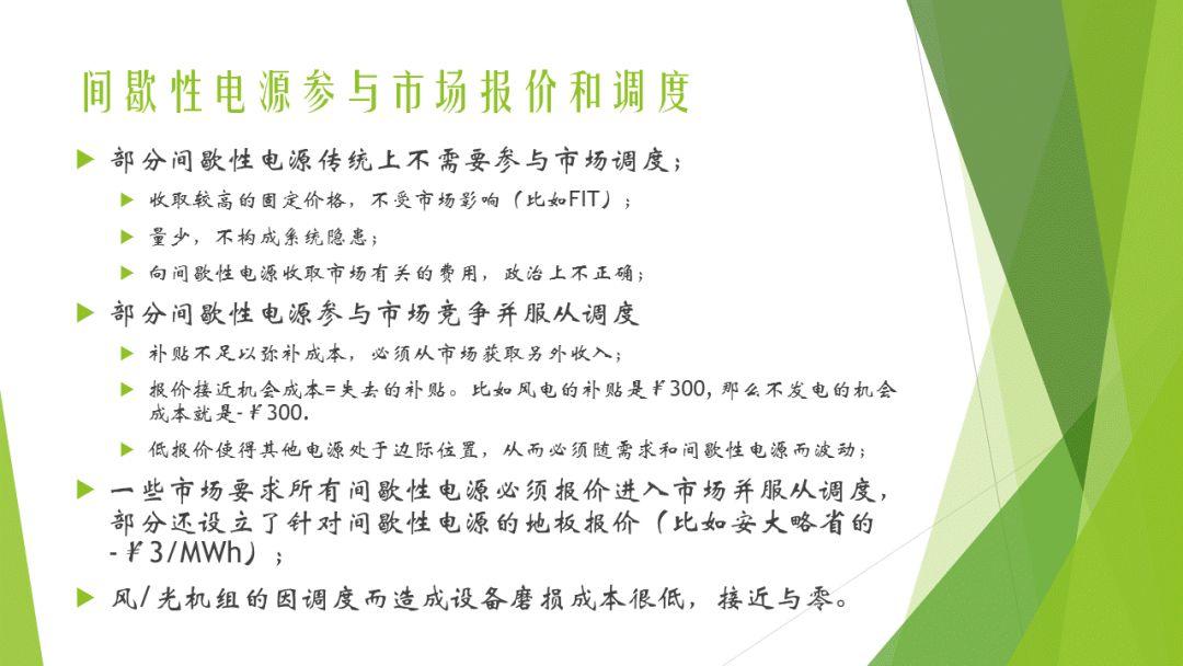 對間歇性電源的高額補貼會扭曲市場價格進而對社會福利造成損害。加拿大安大略省電力市場中對間歇性電源設置地板報價限制的做法可以參考。避免或減小了價格信號的扭曲。