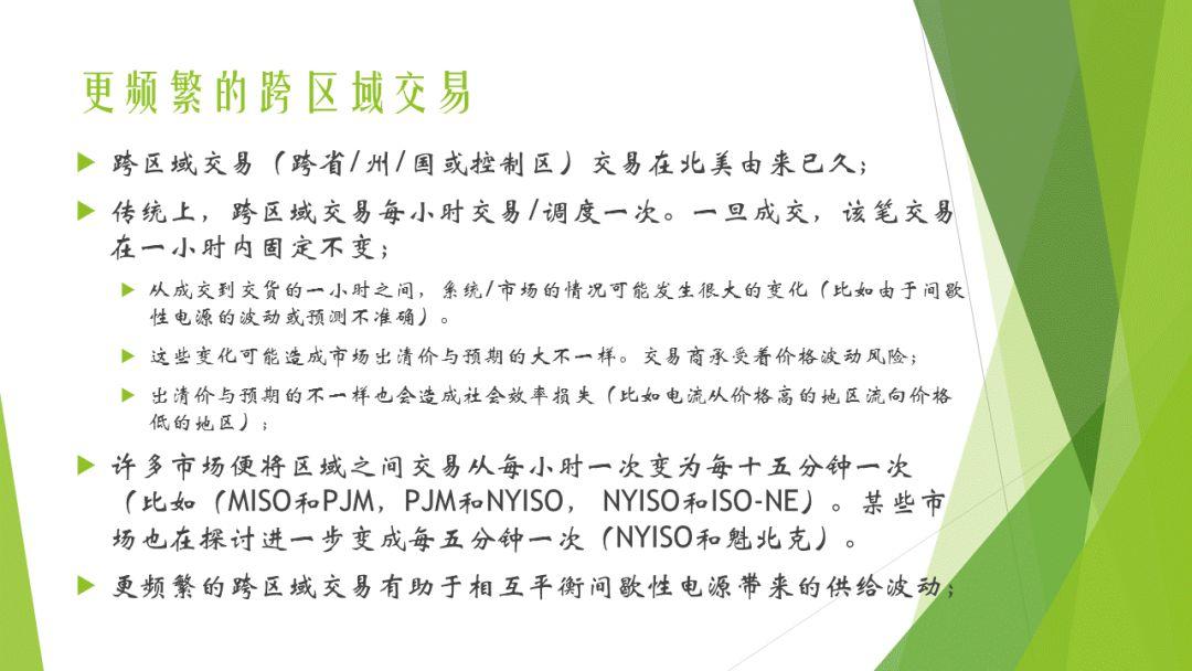 為了應對這個問題,可以采用更頻發(fā)的跨區(qū)交易的方式。北美已經(jīng)由多個市場將區(qū)域之間的交易從每小時一次變?yōu)槭宸昼娨淮危踔猎谔接?分鐘一次(NYISO和魁北克)。