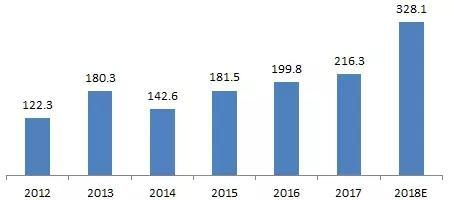 圖表 1 2012-2018年固定式燃料電池出貨量及預(yù)測(cè)(MW)